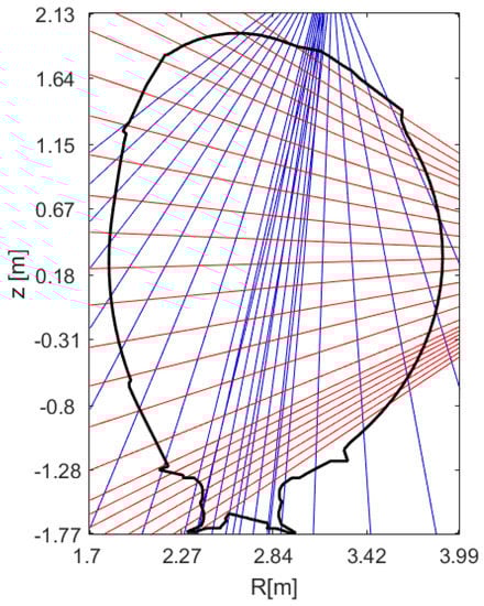 - Carr, M.; Meakins, A.; Bernert, M.; David, P.; Giroud, C.; Harrison, J.; Henderson, S.; Lipschultz, B.; Reimold, F. Description of complex viewing geometries of fusion tomography diagnostics by ray-tracing. Rev. Sci. Instrum. 2018, 89, 083506. [Google Scholar] [CrossRef] [PubMed]