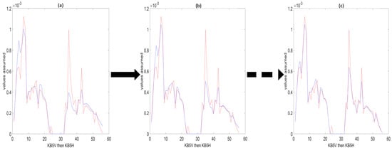 Evolution of the reconstruction uncertainty estimation process (MATLAB) for iterations 2 (a), 3 (b), and 4 (c).