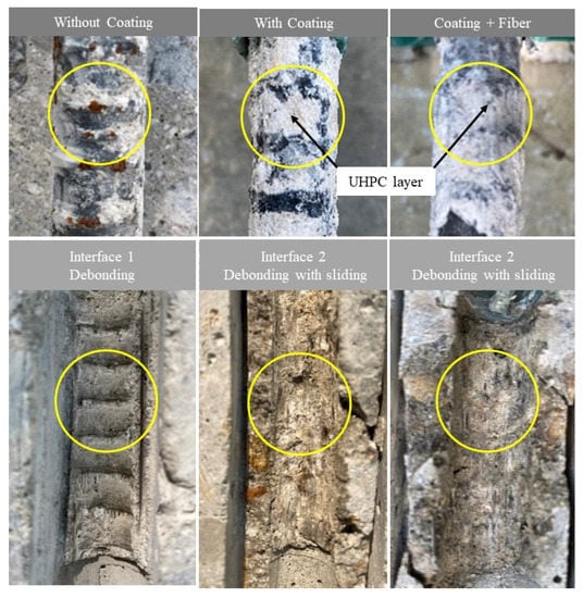 - The thin layer of UHPC coating on the surface was strongly attached to the reinforcing bar and bond failure due to slippage was observed at the UHPC-OPC interface (interface 2) by inducing the integral behavior;