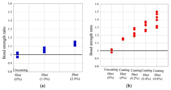 Comparison of the bond strength ratios: (a) uncoated rebars []; (b) UHPC-coated rebars.