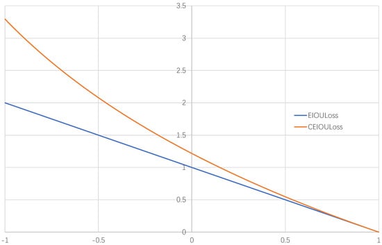 However, in the process of backpropagation, the momentum provided by for network training is constant, and it can also be understood that the gradient of is constant, which cannot give the network a larger momentum to speed up the training of the network when the predicted box and the ground truth box are too far apart. Therefore, this paper proposes a new loss function based on EIOU, namely (Curve ).