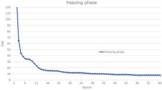 Therefore, this paper will use the already trained YOLOv4 pre-training weights for transfer training. First, the training in the freezing stage is performed, the parameters of the backbone part of the YOLO network will not change with training, and the rest of the parameters will be fine-tuned with training to adapt the network to the new dataset and speed up the initial learning speed of the network for the dataset. Set the batch size to 16, epoch to 100, and use the early stop mechanism, that is, if the loss value drops below the threshold for multiple consecutive epochs, the training in the freezing phase will be stopped. The learning rate is set to , and the cosine annealing learning rate is added, a larger learning rate will decrease at a slower rate. Then in the middle, the learning rate will decrease faster, and finally the learning rate will decrease slowly, making the training of the network more stable. In the unfreezing phase, the backbone of the network will be unfrozen, and all the parameters of the network will participate in the training and will be changed accordingly according to the dataset. Set batch size to 2, epoch to 100, and learning rate to , and the rest are the same as the freezing phase.
