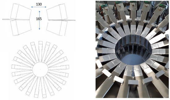 To produce a system with a longer axial field of view more suitable for PEPT, at Birmingham the 42 cassettes were rearranged in two adjacent rings to make a camera whose axial FOV is comparable to its diameter. Because of the way the cassettes splay out, the cassettes in the two rings are angled in either side of the central mounting plate, creating gaps between them; although, at the two extremes, the crystals butt together to create a ring with internal diameter 130 mm, in the centre plane the internal diameter is 165 mm and there are gaps approximately 5 mm wide between the crystals (Figure 4).