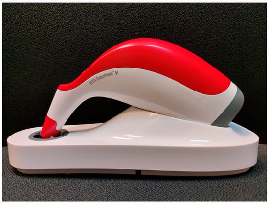 - Knezović, D.; Zlatarić, D.; Illeš, I.Z.; Alajbeg, M.; Žagar. In Vivo and in Vitro Evaluations of Repeatability and Accuracy of VITA Easyshade® Advance 4.0 Dental Shade-Matching Device. Acta Stomatol. Croat. 2015, 49, 112–118. [Google Scholar] [CrossRef]