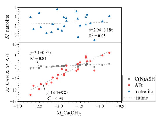 Figure 4 shows the correlation between the SI values of Ca(OH)2 and those of CSH, AFt and natrolite since the saturation level of Ca(OH)2 with respect to the pore solution was regarded as an indicator for the hydration rate of the clinkers [].