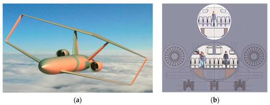 A previous example of addressing a similar research question is given by the European project PARSIFAL ([6,7,8,9]), in which a box-wing aircraft designed for the SMR category (Figure 1a) has been assessed under the operational and environmental standpoints.