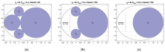 Fuselage and tank cross-sections: (a) without constraint; (b) with = 0.5 m; (c) with = 0.5 m and catwalk width = 0.8 m.