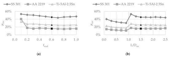 The structural model, based on the ASME Boiler and Pressure Vessel Code, was calibrated by means of FEM analyses mostly devoted to estimating the buckling resistance, since it is the sizing criterion for most of the tanks with a length-to-diameter ratio () higher than 1. Sensitivity analyses were performed varying the structural materials, selected among typical metallic alloys used for cryogenic applications, and observing that the lighter material, i.e., the aluminium alloy AA2219, although the lower mechanical characteristics minimise the structural mass fraction of tanks. The structural analyses also provided a set of guidelines to assign a value to geometric parameters such as the endcaps aspect ratio ( > 0.4), length-to-diameter ratio ( > 1.5), and non-dimensional distance between supports ( < 0.8).