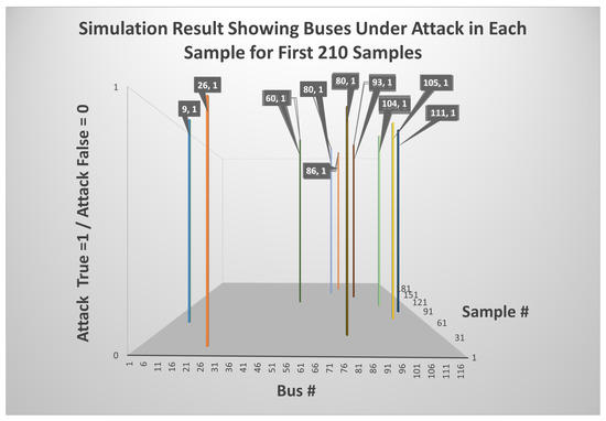 Algorithm 3 demonstrates how the principal purpose of a MITM cyber attack may be recognized and data collected. As we aforementioned, the traffic volume is affected by MITM attacks. This is why the method of detection is implemented by generating and testing packet counts. In this simulation, we alter the network traffic of randomly selected bus samples and as indicated in the algorithm and in the simulation result of Figure 6, we get alerts with the bus number and sample number for every bus that has an error.