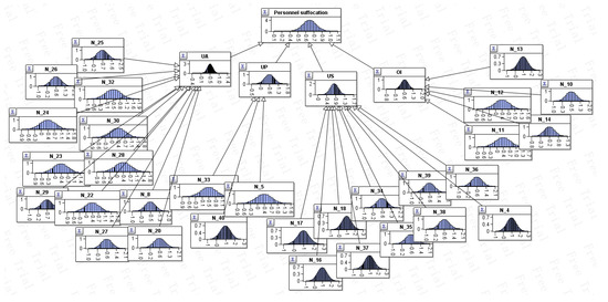 According to [46], the belief propagation analysis of Bayesian inference usually contains forward-propagation and backward-propagation analysis. The forward-propagation analysis is mainly aimed at investigating the influence of parent nodes on their child nodes, while the backward-propagation analysis focuses on the sensitivity of the parent nodes to their child nodes, which is implemented by updating the probability distribution of the parent nodes by setting their child nodes as “evidence”. In the present study, the criticality-based values are utilized to assess the human-related factors involved in the accident, and the higher values of a node, the more important the objective factors. The results presented in Figure 6 are set as the base for comparison, which can be found in Table 8. According to the results of criticality evaluation summarized in Table 4, the nodes with largest criticality value within each category of human-related factor under the framework of HFACS are selected as the given evidence for the backward-propagation analysis. As a result, these nodes coded by “N_13”, “N_16”, “N_17”, “N_18”, “N_25”, “N_29” and “N_40” were selected as the given evidence in the present study. Then, different risk scenarios are developed by decreasing the criticality values of these selected nodes by 50% one by one, and the different scenarios are summarized in Table 8. Subsequently, the various risk scenarios are simulated by the developed BN on the software of AgenaRisk, and the variations in the node of “personnel suffocation” and the four aspects of HFACS are presented in Table 8.