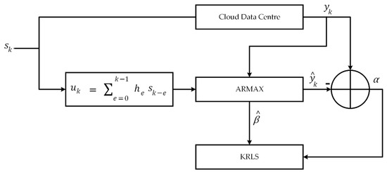 The KRLS handles the nonlinear issues as a nonlinear online prediction model by depicting samples from the actual space to the high-dimensional space using the kernel functions [64]. It adapts and dynamically updates the model depending on time series data, lowering model complexity and computation time. Since its inception, it has become a popular approach for online prediction due to its natural recursive shape, being an extension of the traditional RLS algorithm via the kernel method [65]. The ARMAX model is used in this work to represent the prediction linearly.