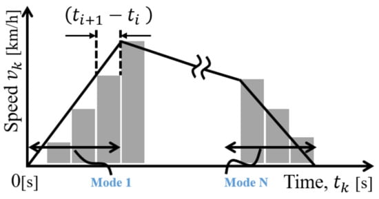 where, is actual distance between two stations, is calculated distance between each adjacent modes i with regard to the selection of breaking points. This value can be acquired by taking the integral of a speed curve such as Figure 1.