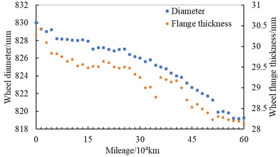 - In this study, it is assumed that the depot is not equipped to automatically measure wheelsets. The wheel flange thickness and wheel diameter are measured manually, and the measurements are recorded by maintenance personnel. The internal failures of the wheel are not considered.