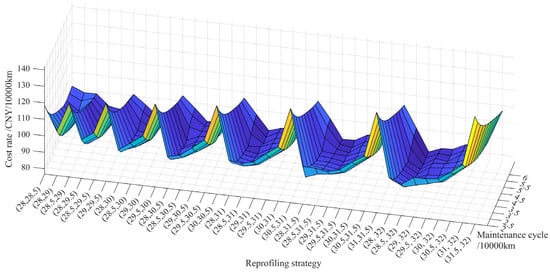 Variation curve of cost rate with maintenance cycles and reprofiling strategies.