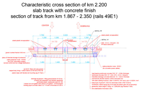 Schematic cross-section of the tram line structure outside the bridge structure [33].