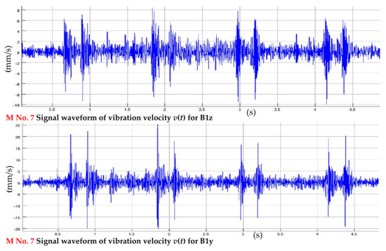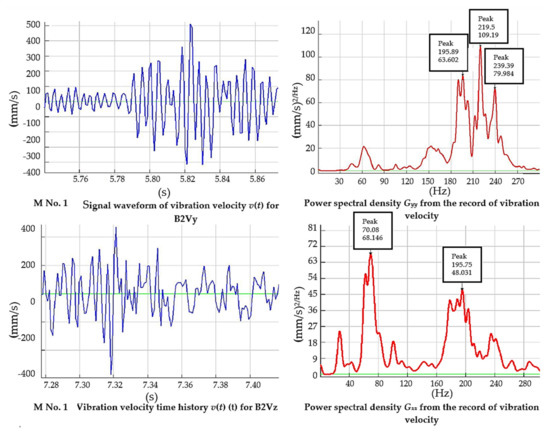 Amplitude characteristics from time records of vibration velocity at points B2Vz and B2Vy.
