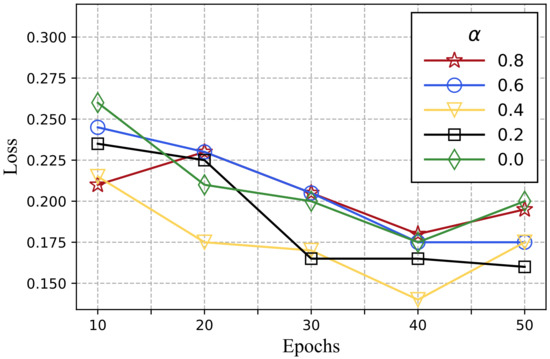 The test set was used to calculate the expression loss rate for various values and training epochs. We obtained the changing trend of the expression loss rate as indicated in Figure 6.