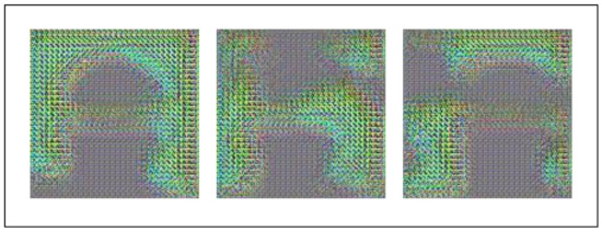 In the problem of face recognition, we also hope to make the smallest possible changes to the image in the process, that is to erase only the private information and maintain its similarity to the original image as much as possible, which is beneficial to maintaining the effectiveness of the image. We used the MSE to calculate the degree of changes to the image. If you set the coefficient of the MSE in the loss function to 0 (set the value of to 1), the resulting image is as shown in Figure 11. From the resulting images represented by these three images, we cannot recognize faces, let alone extract their expression information. It can be considered that the maintenance of image utility is ineffective in this case.