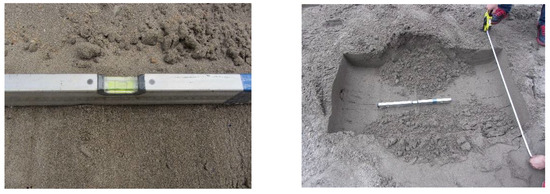 The digging test aims to measure the precision of digging. In this study, the standard measurement method of the leveling instrument is adopted. This method is widely used in plane measurement and can obtain accurate measurement data, as shown in Figure 19.