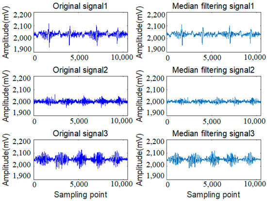 Weak signals processed by median filter. The original weak signals of 1 to 3 correspond with the testing signals of S1 to S3 in Figure 5.