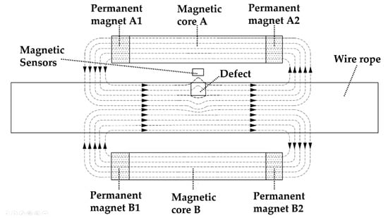 - Gu, W.; Chu, J. A transducer made up of fluxgate sensors for testing wire rope defects. IEEE Trans. Instrum. Meas. 2002, 51, 120–124. [Google Scholar] [CrossRef]