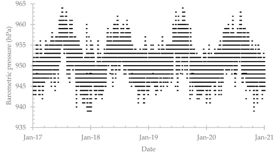 Based on the deviations from the average (Figure 1 and Figure 2), barometric pressure variations in São Paulo state did not exceed 13.0 hPa and, consequently, variations higher than that are not expected to occur in São Paulo state unless extreme weather events, such as hurricanes, occur. As a matter of curiosity concerning extreme weather events, Ref. [7] reports that barometric pressure may drop by 60 hPa from the outer edge of a hurricane to its center.