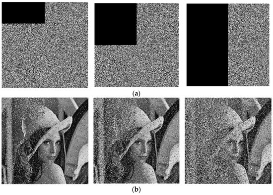 During the transmission of cipher images, there may be data loss or noise pollution. If the robustness of the image-encryption algorithm is not strong, the corresponding decrypted image may lose the original information completely. In order to test the robustness of the proposed algorithm, the cropping attack and noise attack on cipher images are tested.