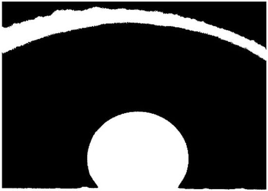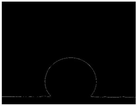 Figure 3 shows the image after implementing the edge function, which returns a binary image, where the edges of the droplet are white and everything else is black. Edge function uses the Sobel edge detection method. The Sobel operator is a discriminant operator, used to find the approximation of a derivative of an image intensity value [30]. It is easy to implement, compared to other operators. It is based on convolving the image with a 3 × 3 filter in horizontal and vertical direction and is therefore relatively inexpensive in terms of calculations [31].