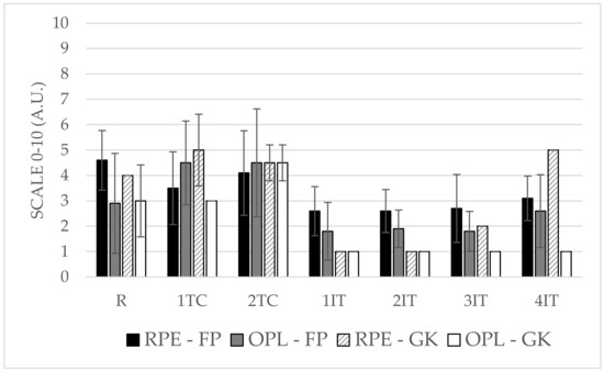 GKs differ significantly compared to field players in the case of total pain area, OPL and RPE, which may result in significantly lower values of total distance and average HR which are proven by different studies [5]. This is caused mainly by a very small penalty box (10 × 8 m), which results in very low distance covered compared to AF field players, and a small number of defensive situations during a match. Due to the specific role of the AF, GKs and the reduced area of play in our study, GKs were excluded from the GNSS match analysis.