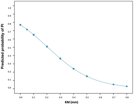 Decreased probability of peri-implantitis in terms of mm of keratinized mucosa. PI (peri-implantitis), KM (keratinized mucosa).