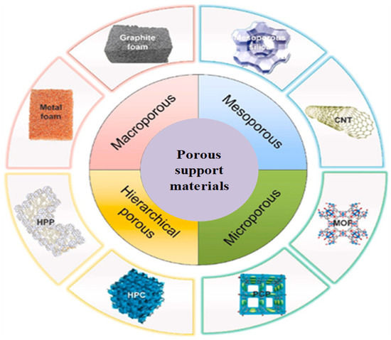 - Huang, X.; Chen, X.; Li, A.; Atinafu, D.; Gao, H.; Dong, W.; Wang, G. Shape-stabilized phase change materials based on porous supports for thermal energy storage applications. Chem. Eng. J. 2019, 356, 641–661. [Google Scholar] [CrossRef]