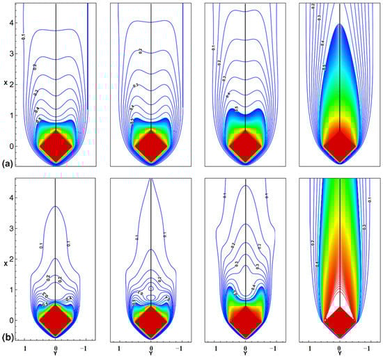 - Vijaybabu, T.R.; Anirudh, K.; Dhinakaran, S. LBM simulation of unsteady flow and heat transfer from a diamond-shaped porous cylinder. Int. J. Heat Mass Transf. 2018, 120, 267–283. [Google Scholar] [CrossRef]
