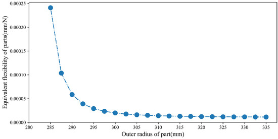 Relationship between the equivalent flexibility and the outer radius of the in-process workpiece.