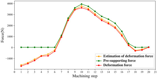 Prediction of deformation force, pre-support force, and the deformation force at each machining step.