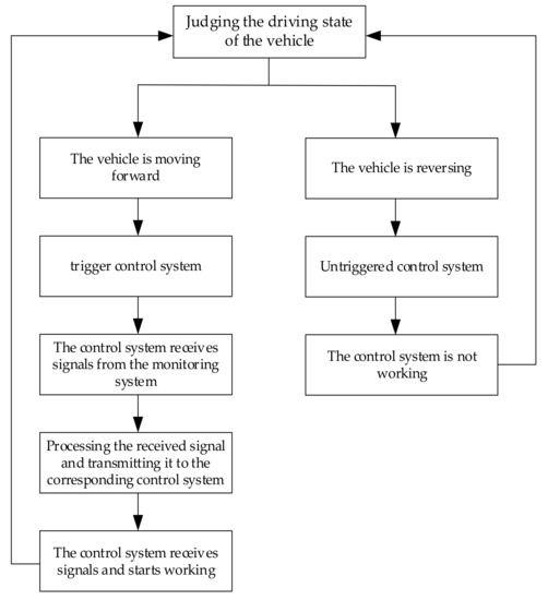 The multi-mode optimal decision control system is divided into a double monitoring system and a single layer execution system. The main function of the monitoring system is to monitor the vehicle speed. When the vehicle speed meets a certain condition, the system transmits the received signal under this condition to the next monitoring system. At this time, the second layer monitoring system monitors the front wheel angle. When the current wheel angle changes, the monitoring system will transmit the corresponding signal of the angle size to the execution system. When the execution system receives the signal of the monitoring system, the corresponding controller works. The flow chart of monitoring and control system is shown in Figure 13.