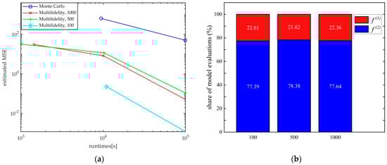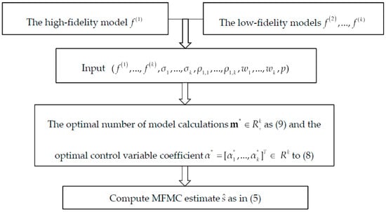 where , , and is the calculation budget. The global minimum solution of Equation (7) is . The MFMC framework is shown in Figure 1. Using the number of model calculations and the coefficients , the MSE of the multi-fidelity estimation is