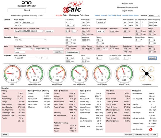 The eCalc [] tool helped us find the best electric propulsion setup for the Elka1Q drone; disclaimer from eCalc: * The manufacturer limitation is NOT monitored (relates to motor revolutions).