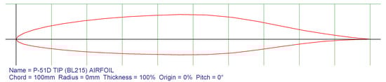 - Airfoil Plotter. 2022. Available online: http://airfoiltools.com/plotter/index?airfoil=p51dtip-il (accessed on 18 May 2022).