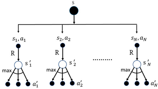 - The agent selects action (a) in the current state () based on the current Q-value and estimates state-action pair using Equation (15).