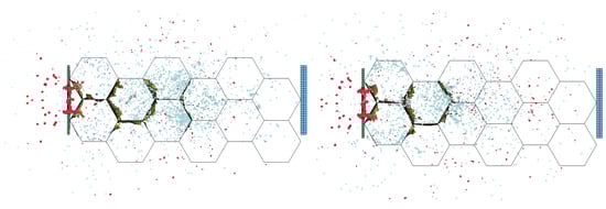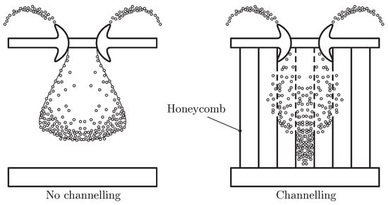 12], among others. These researchers adopted an orientation of the honeycomb, where the cells’ axis is perpendicular to the front and bumper plates. This allows for a significant reduction in the debris spread angle, but creates a channelling effect, as the honeycomb is orientated parallel to the direction of debris travel, as shown in