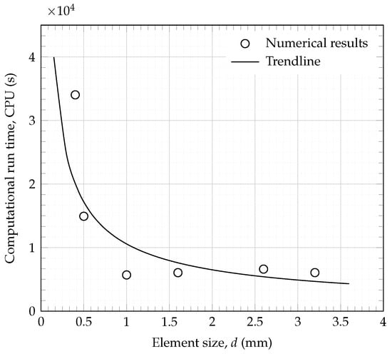 Figure 10 indicate that the optimum solution in terms of reducing CPU time whilst retaining an accurate solution, is to use a 1 mm element size.