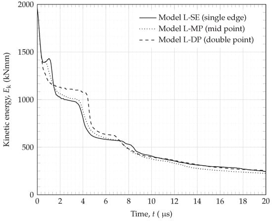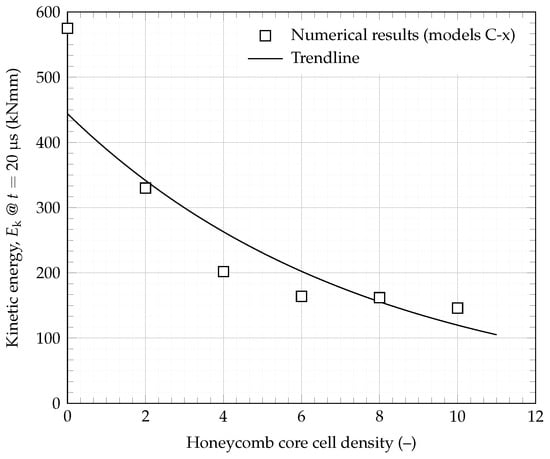 Figure 10. The convergence analysis simulation was set up with an SPH density of 5 particles/mm to minimise computational run time, and all remaining models were set up with the optimal 7 particles/mm density. Al2024-T3 was used for all components of the shield, and all parameters other than the mesh element size of the honeycomb shell were kept constant. The results in