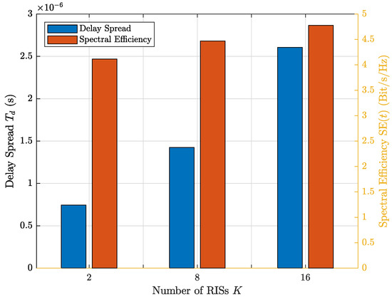 Note that ; thus, . Therefore, at time t, the delay spread for the K RISs is