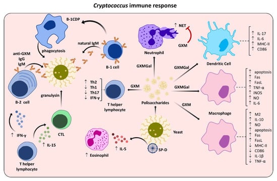 Immune response against Cryptococcus spp. and its capsular polysaccharides immunomodulatory effects.