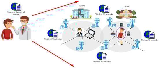 The 5G networks provide potential useful possibilities for healthcare thanks to the unique characteristics in terms of speed, massive device connectivity, reliability, and so on [,]. These wireless networks pave the connection between the hospital and patients by commonly using integrated sensors and actuators [].