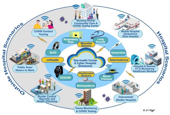 - Ding, X.; Clifton, D.; Ji, N.; Lovell, N.H.; Bonato, P.; Chen, W.; Yu, X.; Xue, Z.; Xiang, T.; Long, X.; et al. Wearable Sensing and Telehealth Technology with Potential Applications in the Coronavirus Pandemic. IEEE Rev. Biomed. Eng. 2021, 14, 48–70. [Google Scholar] [CrossRef] [PubMed]
