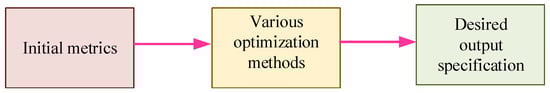 Optimization term refers to achieving the best trade-offs between the targets and constraints (see Figure 16) and improved optimization methods are required as the designs become complex [,]. For this case, firstly the design variables are defined for each of the biomedical devices, then the suitable optimization method is selected, aiming to optimize the targeted output specifications. Due to the requirement of necessity, the designer selects the output specifications and then determines the suitable optimization method for achieving the desired outputs. For example, medical designers may need to enhance the bandwidth or gain of biomedical devices. Hereby, an appropriate optimization method for their problem will be selected that aims to improve the bandwidth or gain.
