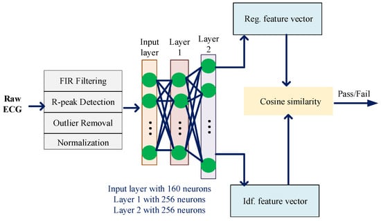 - Cherupally, S.K.; Yin, S.; Kadetotad, D.; Srivastava, G.; Bae, C.; Kim, S.J.; Seo, J.s. ECG Authentication Hardware Design with Low-Power Signal Processing and Neural Network Optimization With Low Precision and Structured Compression. IEEE Trans. Biomed. Circuits Syst. 2020, 14, 198–208. [Google Scholar] [CrossRef]