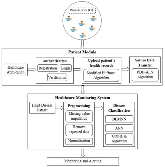 - Sarmah, S.S. An Efficient IoT-Based Patient Monitoring and Heart Disease Prediction System Using Deep Learning Modified Neural Network. IEEE Access 2020, 8, 135784–135797. [Google Scholar] [CrossRef]