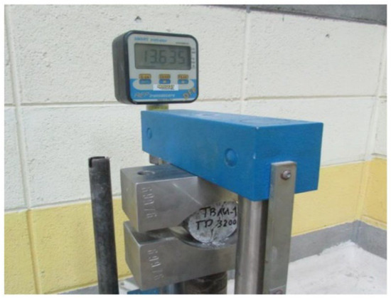 A tunneling project in Pahang state, Malaysia, was used to extract the data used in this study. Additional information regarding the field study can be found in Jahed Aramaghani et al. [3]. Three tunnel boring machines (TBMs) were used to excavate 35 km of the tunnel, and drilling and blasting techniques were used to excavate the rest of the tunnel [3]. Although most of the excavated rocks consisted of granite (based on the mentioned techniques), there were metamorphic and some sedimentary rocks in the geological units. The research team collected a total of 120 granite block samples from the tunnel face at different tunnel distances and several locations, and the tests were performed by transferring these block samples to the rock mechanics laboratory. Then, the procedure suggested by the ISRM [35] was applied to prepare the block rock samples for each planned test. Laboratory tests—including UCS, point load, density, the Schmidt hammer, BTS, and p-wave—were planned and conducted on the samples in the experimental program. Then, to model this study, the obtained results were considered. As mainly suggested by the literature, the BI values were calculated as BI = UCS/BTS, and then set as the output. The related inputs of the model included the p-wave velocity (Vp), point load strength index (Is50), dry density (D), and Schmidt hammer rebound number (Rn). In Figure 1 and Figure 2, BTS and UCS tests were conducted on the samples and their failures, respectively.